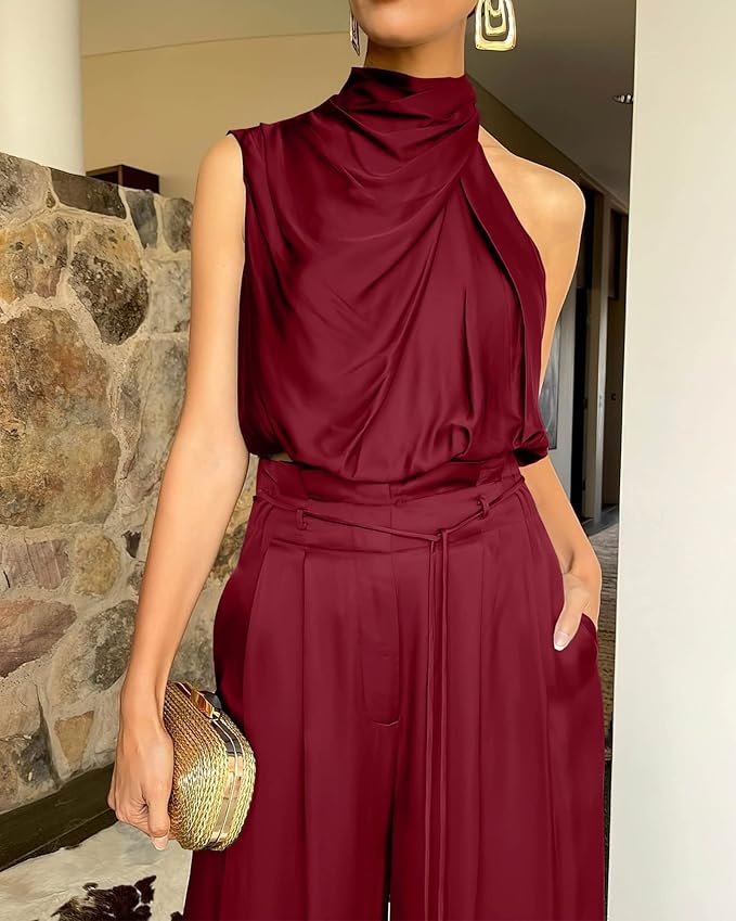 Stay cool and comfortable in this sleeveless wide leg top. The sleeveless top ensures freedom of movement and breathability, while the wide-leg trousers offer a relaxed fit that's perfect for any occasion.