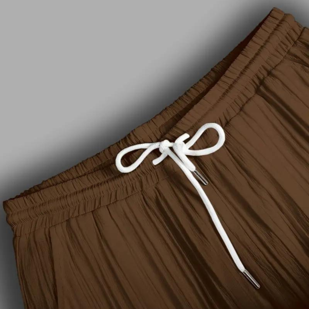 - Stylish Design: Features a chic button-up shirt and matching drawstring trousers.